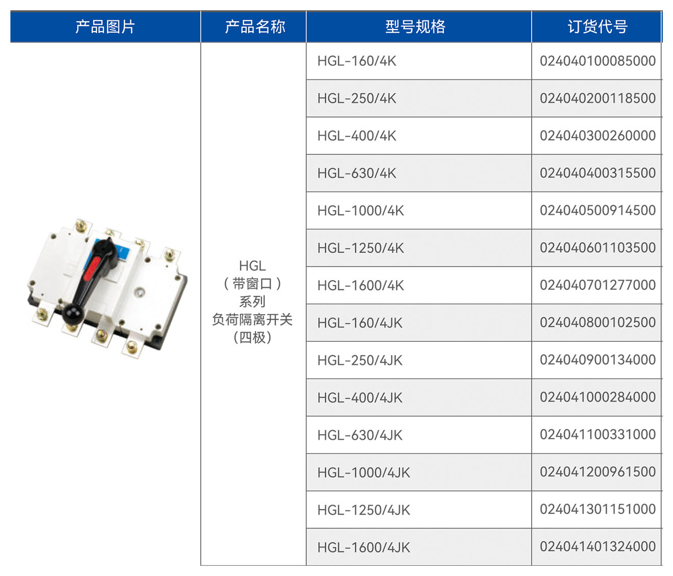 HGL(带窗口)系列负荷隔离开关(四极)