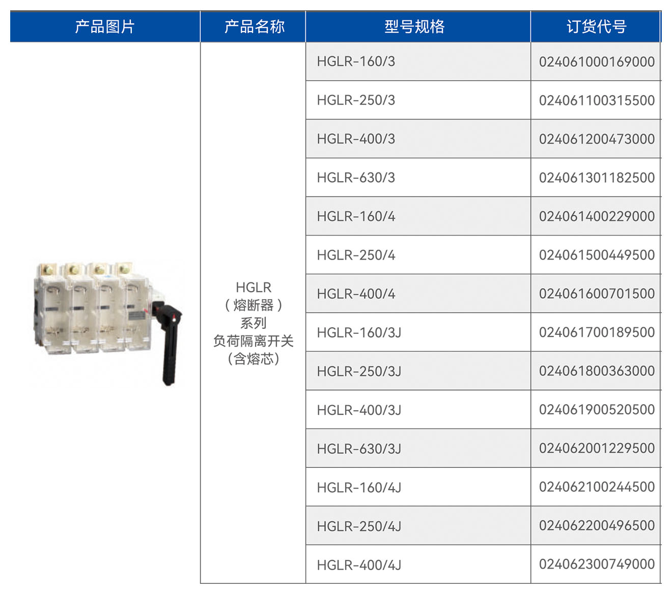 HGLR(熔断器)系列负荷隔离开关(含熔芯)