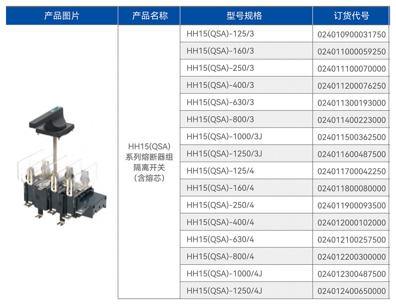 HH15(QSA)系列熔断器组隔离开关(含熔芯)