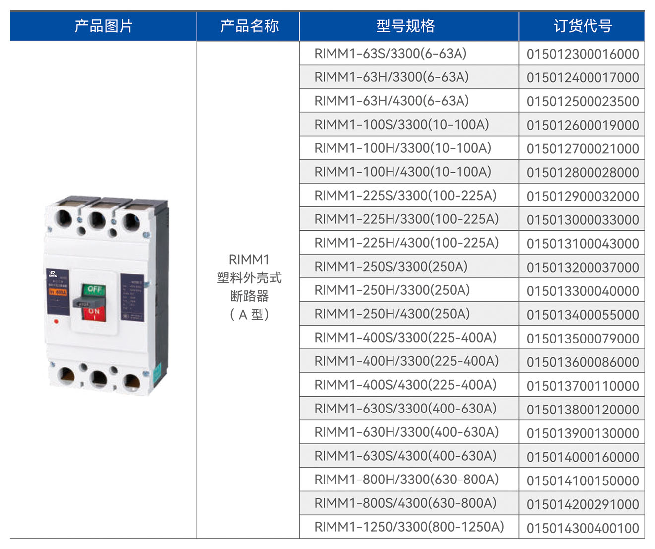 RIMM1-125S/3300塑料外壳式断路器